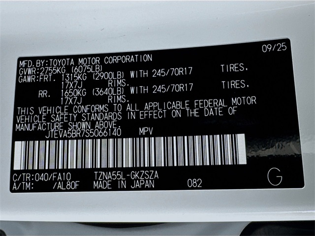 VIN JTEVA5BR7S5066140