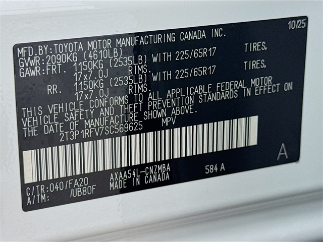 VIN 2T3P1RFV7SC569625