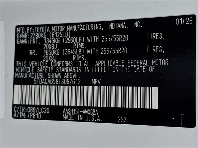 Toyota Safety Sense™ 3.0 (TSS 3.0) — Pre-Collision System with Pedestrian Detection (PCS w/PD), Full-Speed Range Dynamic Radar Cruise Control (DRCC), Lane Departure Alert with Steering Assist (LDA w/SA), Lane Tracing Assist (LTA), Road Sign Assist (RSA), Automatic High Beams (AHB), Proactive Driving Assist (PDA)3-point seatbelts for all seating positions; driver's-side Emergency Locking Retractor (ELR) and Automatic/Emergency Locking Retractor (ALR/ELR) on all passenger seatbeltsChild-protector rear door locks and power window lockout controlAnti-theft system with alarm and engine immobilizerBackup camera with dynamic gridlinesStar Safety System™ — includes Electronically Controlled Braking (ECB), Enhanced Vehicle Stability Control (VSC), Traction Control (TRAC), Anti-lock Brake System (ABS), Electronic Brake-force Distribution (EBD), Brake Assist (BA) and Smart Stop Technology® (SST)