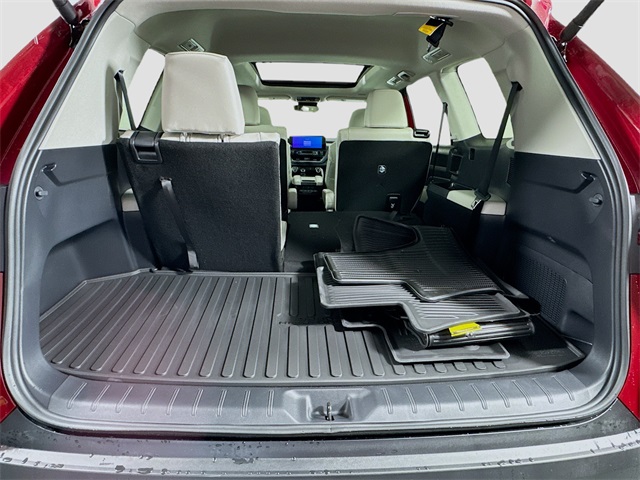 - 7-passenger seating with second-row fold-down captain's chairs and fold-down inboard armrests, adjustable headrests and two cup holders mounted on the floor; and 60/40 split, fold-down third-row seats with sliding headrests and recline function