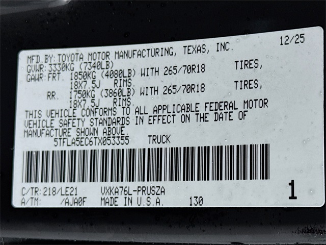 - Chrome "TUNDRA" and "SR5" door badges; black door handles, window molding, mirror caps, tailgate spoiler and overfenders