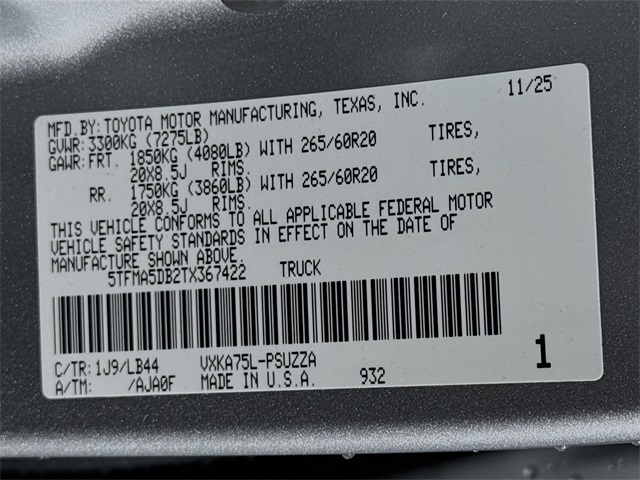 VIN 5TFMA5DB2TX367422