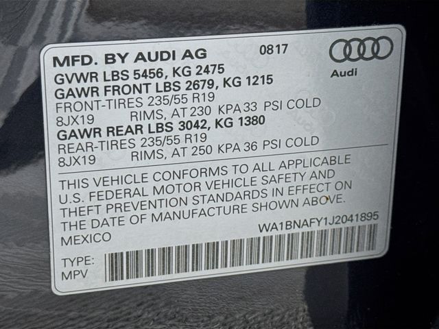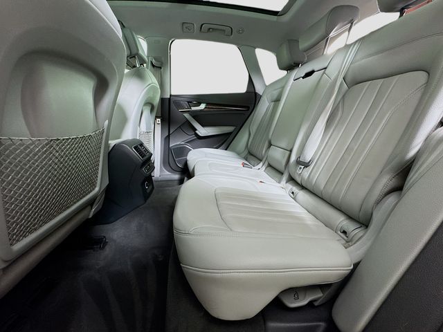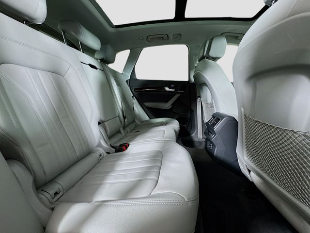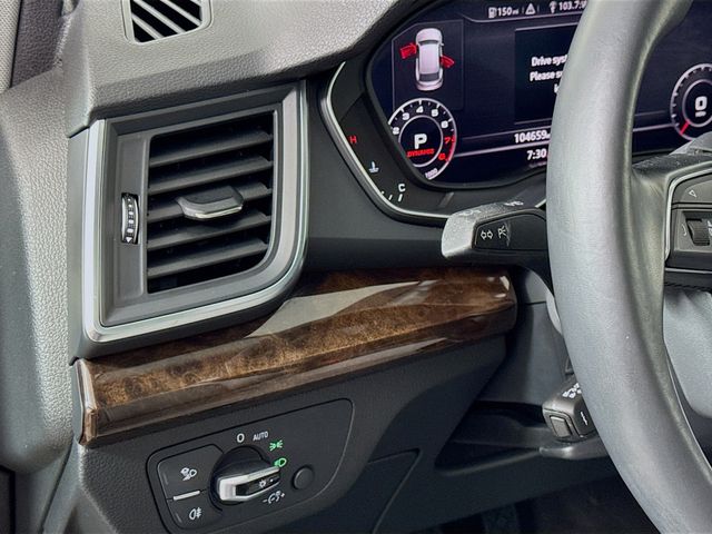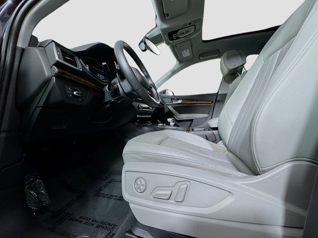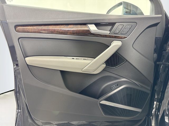 Bluetooth for Phone and Audio Streaming, USB Port, MP3- USB / I-Pod Ready, Hands Free Calling, Maintenance inspection completed Brake pads replaced Four tires balanced Four tires mounted Four tires replaced Four wheel alignment performed Front brake pads replaced Front brake rotor(s) replaced Oil and filter changed Tire condition and pressure checked Wheel locks installed, Q5 2.0T Premium Plus quattro, 4D Sport Utility, 2.0L TFSI, 7-Speed Automatic S tronic, quattro, Moonlight Blue, Rock Gray w/Leather Seating Surfaces, 10 Speakers, 3-Step Heated Front Seats, 3-Step Heated Rear Seats, 8-Way Power Front Bucket Seats, Air Conditioning, Audi Advanced Key, Audi Connect CARE, Audi Connect PRIME & PLUS, Audi Side Assist w/Pre Sense Rear, Audi smartphone interface (Apple CarPlay/Android Auto), Audi Virtual Cockpit, Bang & Olufsen 3D Sound System, Cold Weather Package, Compass, Driver door bin, Driver Seat Memory, Driver vanity mirror, Exterior Parking Camera Rear, Front dual zone A/C, Front reading lights, Full LED Headlights, Heated 3-Spoke Multifunction Steering Wheel, Heated Auto-Dimming & Power-Adjustable Mirrors, High Gloss Window Surrounds, High intensity discharge headlights: Xenon plus, Illuminated entry, Leather Shift Knob, Leather steering wheel, Navigation Package, Outside temperature display, Panoramic Sunroof w/Tilt/Slide & Power Sunshade, Parking System Plus (Front/Rear Acoustic Sensors), Passenger vanity mirror, Power door mirrors, Power driver seat, Power Liftgate, Power steering, Power windows, Premium Plus Package, Radio: Audi Sound System w/7" TFT Color Display, Radio: MMI Navigation Plus System, Rear Cross Traffic Assist, Rear window defroster, SiriusXM All Access Service, Spoiler, Stainless Steel Door Sills, Turn signal indicator mirrors, Wheels: 8" x 19" 5-Arm-Wing Design Wheel. 23/27 City/Highway MPG
