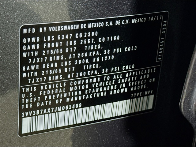 NAC CERTIFIED,USB Port, MP3- USB / I-Pod Ready, Hands Free Calling, Back Up Camera, Bluetooth for Phone and Audio Streaming, REAPIR ORDER $2,272.94, NEW CABIN FILTER, NEW AIR FILTER, NEW REAR BRAKES, NEW FRONT BRAKES, NEW REAR ROTORS, NEW FRONT ROTORS, ALIGNMENT, NEW FRONT WIPER BLADES, NEW REAR WIPER BLADES, NEW OIL AND FILTER, 3.33 Axle Ratio, 3rd row seats: bench, 4-Wheel Disc Brakes, 6 Speakers, ABS brakes, Air Conditioning, Alloy wheels, AM/FM radio: SiriusXM, Automatic temperature control, Bumpers: body-color, Compass, Delay-off headlights, Driver door bin, Driver vanity mirror, Dual front impact airbags, Dual front side impact airbags, Electronic Stability Control, Emergency communication system: VW Car-Net, Exterior Parking Camera Rear, Four wheel independent suspension, Front anti-roll bar, Front Bucket Seats, Front Center Armrest, Front dual zone A/C, Front reading lights, Fully automatic headlights, Heated door mirrors, Heated Front Bucket Seats, Heated front seats, Illuminated entry, Leather Shift Knob, Low tire pressure warning, Occupant sensing airbag, Outside temperature display, Overhead airbag, Overhead console, Panic alarm, Passenger door bin, Passenger vanity mirror, Perforated V-Tex Leatherette Seating Surfaces, Power door mirrors, Power driver seat, Power steering, Power windows, Radio data system, Radio: AM/FM/HD/CD w/Dual USB & Aux-In, Rear anti-roll bar, Rear reading lights, Rear seat center armrest, Rear window defroster, Rear window wiper, Remote CD player, Remote keyless entry, Roof rack: rails only, Speed control, Speed-sensing steering, Split folding rear seat, Spoiler, Steering wheel mounted audio controls, Tachometer, Telescoping steering wheel, Tilt steering wheel, Traction control, Trip computer, Turn signal indicator mirrors, Variably intermittent wipers, Wheels: 17" Tulsa. Platinum Gray Metallic FWD