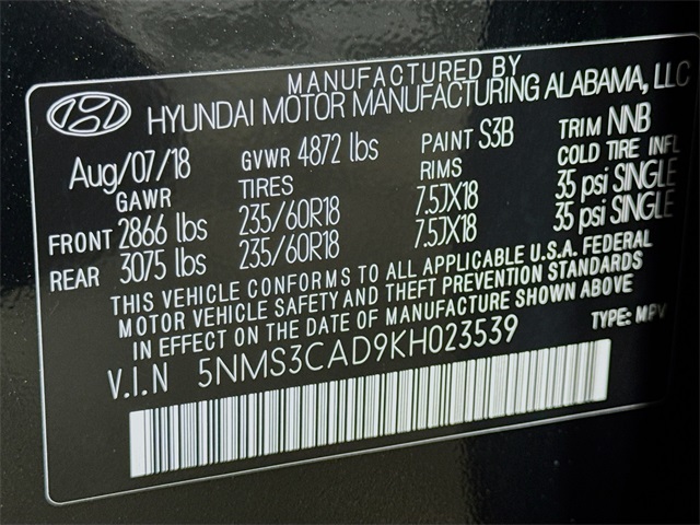 2019 Hyundai Santa Fe SEL Twilight Black