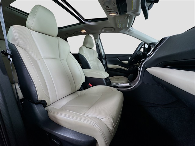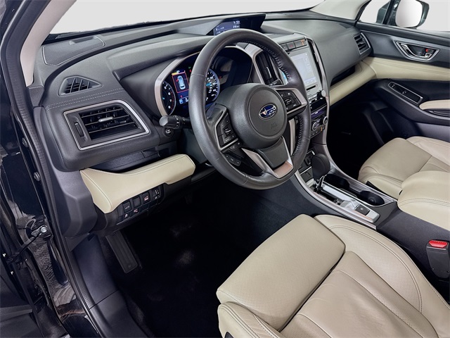 Bluetooth for Phone and Audio Streaming, USB Port, MP3- USB / I-Pod Ready, Hands Free Calling, Maintenance inspection completed Air filter replaced Oil and filter changed Rear brake pads replaced Tire(s) balanced Tires rotated Wiper(s) replaced Looks like this dealer servic, Ascent Limited, 4D Sport Utility, 2.4L DOHC, Lineartronic CVT, AWD, Crystal Black Silica, Ivory Leather, 20" Alloy Wheels, 3rd row seats: bench, 4-Wheel Disc Brakes, 6 Speakers, ABS brakes, Auto High-beam Headlights, Automatic temperature control, Cargo Area Cover, CD player, Delay-off headlights, Driver door bin, Driver vanity mirror, Dual front impact airbags, Dual front side impact airbags, Dual Glass Panoramic Power Moonroof, Emergency communication system: STARLINK Safety and Security, Exterior Parking Camera Rear, Four wheel independent suspension, Front Bucket Seats, Front Center Armrest, Front fog lights, Front reading lights, Fully automatic headlights, harman kardon & Moonroof & Nav & Cargo Area Cover, Heated door mirrors, Heated Front Bucket Seats, Heated rear seats, Heated steering wheel, Memory seat, Outside temperature display, Panic alarm, Passenger vanity mirror, Perforated Leather-Trimmed Upholstery, Power door mirrors, Power driver seat, Power Liftgate, Power steering, Power windows, Radio data system, Radio: Subaru STARLINK 8.0" Multimedia Nav System, Rear air conditioning, Remote keyless entry, Security system, Speed control, Split folding rear seat, Spoiler, Steering wheel mounted audio controls, Tachometer, Telescoping steering wheel, Tilt steering wheel, Traction control, Trip computer. 20/26 City/Highway MPG