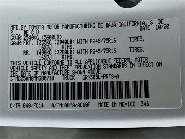 VR Certified 7yr 100000 warranty. 2021 Toyota Tacoma SR5 V6 Super White USB Port, MP3- USB / I-Pod Ready, Hands Free Calling, Back Up Camera, Bluetooth for Phone and Audio Streaming, Clean Carfax, REPAIR ORDER $1,968.02, NEW FRONT BRAKES, NEW CABIN FILTER, NEW TIRES, TIRES MOUNT AND BALANCED, NEW AIR FILTER, NEW FORNT WIPER BLADES, NEW OIL AND FILTER, TIRES ROTATE AND BALANCE, ALIGNMENT, FRONT ROTORS, NEW WHEEL LOCK, 6 Speakers, ABS brakes, Active Cruise Control, Air Conditioning, Alloy wheels, AM/FM radio: SiriusXM, Anti-whiplash front head restraints, Apple CarPlay/Android Auto, Auto High-beam Headlights, Auto-dimming Rear-View mirror, Automatic temperature control, Axle Ratio: 3.91, Bar Gray Ring Chrome Front Grille, Brake assist, Bumpers: body-color, Color-Keyed Overfenders, Daytime Running Lamps, Driver door bin, Dual front impact airbags, Dual front side impact airbags, Electronic Stability Control, Emergency communication system: Safety Connect with 1-year trial, Exterior Parking Camera Rear, Fabric Seat Trim (FC), Front anti-roll bar, Front Bucket Seats, Front Center Armrest, Front dual zone A/C, Front Fog Lamps, Front fog lights, Front reading lights, Front Seats, Front wheel independent suspension, Illuminated entry, Knee airbag, Low tire pressure warning, Occupant sensing airbag, Outside temperature display, Overhead airbag, Overhead console, Panic alarm, Passenger door bin, Power door mirrors, Power driver seat, Power Sliding Rear Window w/Privacy Glass, Power steering, Power windows, Radio: AM/FM Radio, Rear step bumper, Remote keyless entry, Speed control, Speed-sensing steering, Split folding rear seat, Steering wheel mounted audio controls, Tachometer, Telescoping steering wheel, Tilt steering wheel, Traction control, Trip computer, Variably intermittent wipers, Wheels: 16" x 7J Silver Alloy.