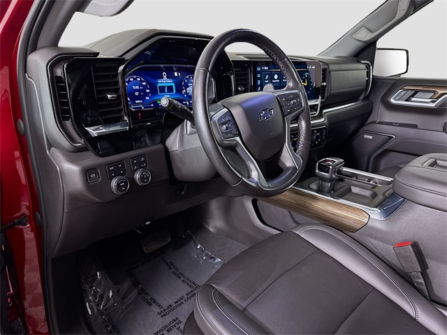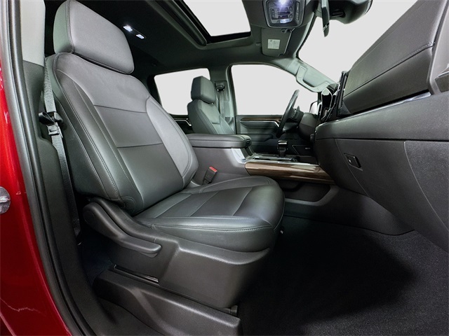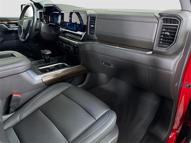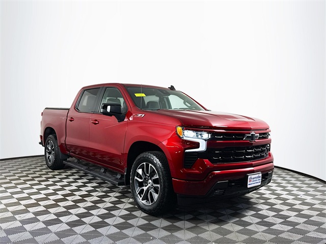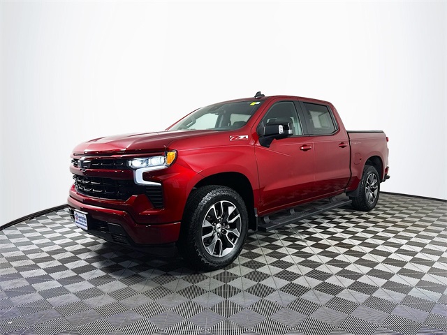 Bluetooth for Phone and Audio Streaming, USB Port, MP3- USB / I-Pod Ready, Hands Free Calling, Silverado 1500 RST, 4D Crew Cab, EcoTec3 5.3L V8, Cherry Red Tintcoat, Black Leather, 10-Way Power Driver Seat w/Lumbar, 12.3" Multicolor Reconfigurable Digital Display, 120-Volt Bed Mounted Power Outlet, 120-Volt Instrument Panel Power Outlet, 2 USB Data Ports, 4-Wheel Disc Brakes, 6 Speakers, 6-Speaker Audio System, ABS brakes, Air Conditioning, Alloy wheels, AM/FM radio: SiriusXM with 360L, Apple CarPlay/Android Auto, Auto High-beam Headlights, Automatic temperature control, Delay-off headlights, Driver vanity mirror, Dual Exhaust w/Polished Outlets, Dual front impact airbags, Dual front side impact airbags, Dual-Zone Automatic Climate Control, Electric Rear-Window Defogger, Electronic Stability Control, Electronic Transmission Range Selector Shifter, Floor Mounted Center Console, Forward Collision Alert, Front Bucket Seats, Front Center Armrest w/Storage, Front fog lights, Front LED Fog Lamps, Front License Plate Kit, Front reading lights, Front wheel independent suspension, Fully automatic headlights, Heated door mirrors, Heated Driver & Front Outboard Passenger Seats, Heavy-Duty Air Filter, Hill Descent Control, Hitch Guidance w/Hitch View, Off-Road Suspension, Passenger door bin, Power door mirrors, Power Front Windows w/Driver Express Up/Down, Power Front Windows w/Passenger Express Down, Power Rear Windows w/Express Down, Power steering, Power Sunroof, Power windows, Radio: Chevrolet Infotainment 3 Premium System, Rear step bumper, Rear window defroster, Remote keyless entry, Security system, Speed control, Standard Suspension Package, Standard Tailgate, Tachometer, Telescoping steering wheel, Theft Deterrent System (Unauthorized Entry), Tilt steering wheel, Trailering App, Trip computer, Wireless Charging, Z71 Off-Road Package. Odometer is 15294 miles below market average!