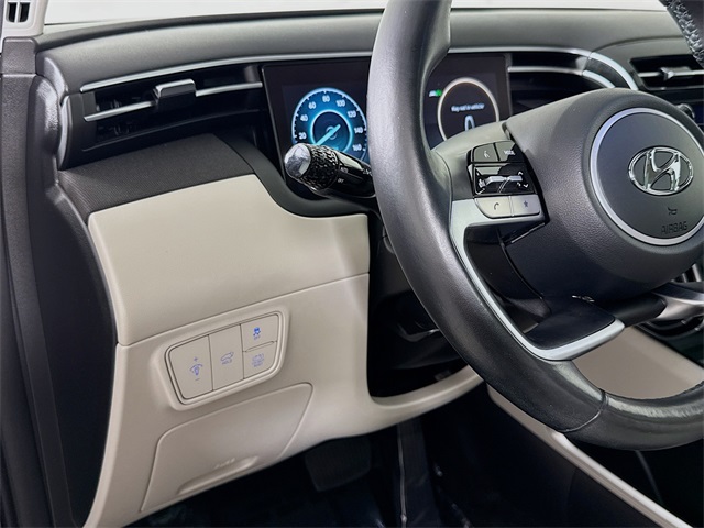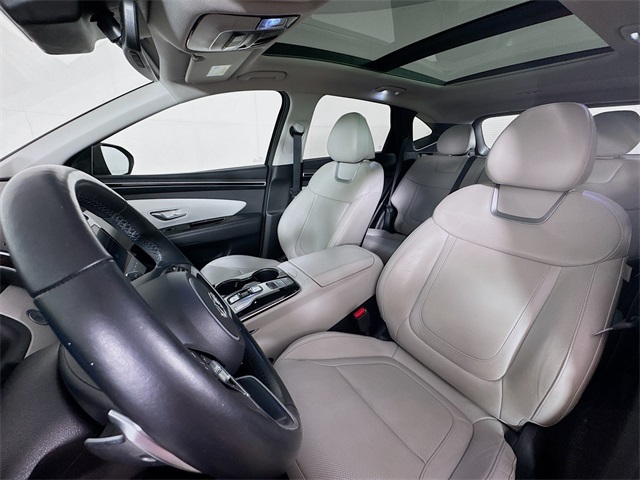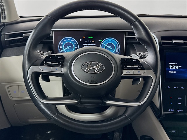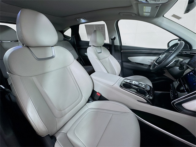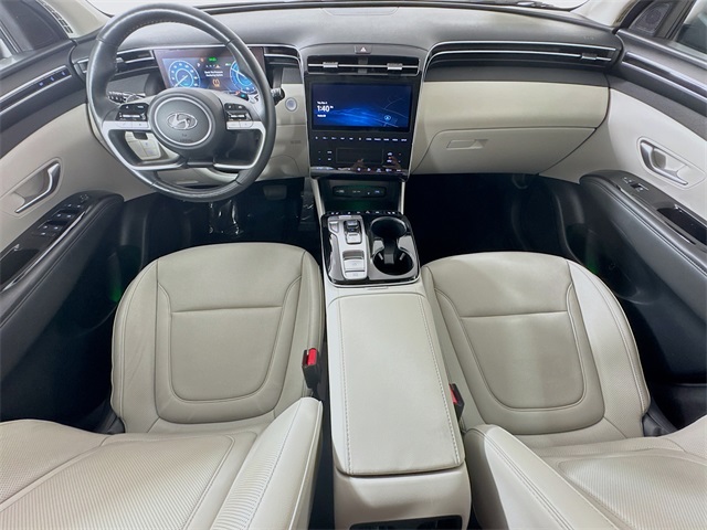 **ONE OWNER**, Bluetooth for Phone and Audio Streaming, USB Port, MP3- USB / I-Pod Ready, Hands Free Calling, Clean Carfax, Fresh New OIl Change, 4-wheel Alignmnet, Tires - Rotated & Balanced, Tucson Hybrid Limited, 4D Sport Utility, I4, 6-Speed Automatic, AWD, Phantom Black, Gray Leather, 4-Wheel Disc Brakes, 8 Speakers, ABS brakes, Air Conditioning, Apple CarPlay & Android Auto, Auto High-beam Headlights, Automatic temperature control, Carpeted Floor Mats, Driver door bin, Driver vanity mirror, Dual front impact airbags, Dual front side impact airbags, Electronic Stability Control, Four wheel independent suspension, Front Bucket Seats, Front Center Armrest, Front dual zone A/C, Front reading lights, Fully automatic headlights, Heated & Ventilated Front Bucket Seats, Heated door mirrors, Illuminated entry, Leather Seat Trim, Low tire pressure warning, Memory seat, Navigation System, Outside temperature display, Passenger door bin, Passenger vanity mirror, Power door mirrors, Power driver seat, Power Liftgate, Power moonroof, Power passenger seat, Power steering, Power windows, Radio: Bose Premium w/AM/FM/HD/SiriusXM Audio System, Rain sensing wipers, Rear seat center armrest, Rear window defroster, Rear window wiper, Remote keyless entry, Security system, Split folding rear seat, Spoiler, Steering wheel mounted audio controls, Tachometer, Telescoping steering wheel, Tilt steering wheel, Traction control, Trip computer, Turn signal indicator mirrors, Variably intermittent wipers, Wheels: 19" x 7.5" J Machine-Face Finish Alloy. 37/36 City/Highway MPG