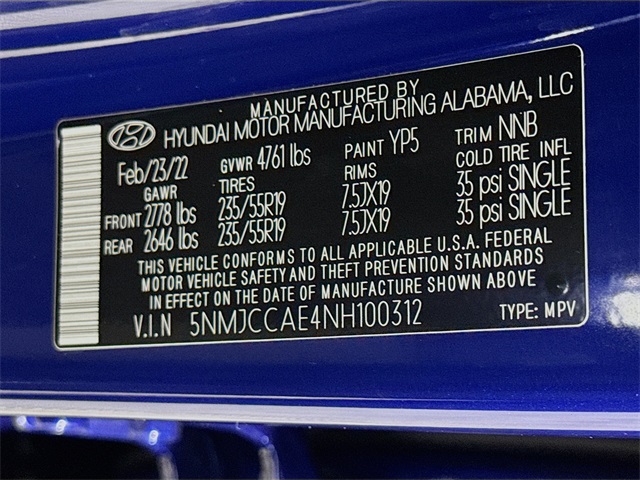 NAC CERTIFIED,USB Port, MP3- USB / I-Pod Ready, Hands Free Calling, Back Up Camera, Bluetooth for Phone and Audio Streaming, Clean Carfax, REPAIR ORDER $2,055.01, NEW FRONT WIPER BLADES, NEW AIR FILTER, TIRES ROTATE AND BALANCE, NEW REAR BRAKES, NEW FRONT BRAKES, NEW REAR ROTORS, NEW FRONT ROTORS, ALIGNMENT, NEW OIL AND FILTER, 10.25" Digital Instrument Cluster, 3.648 Axle Ratio, 4-Wheel Disc Brakes, 6 Speakers, ABS brakes, Air Conditioning, Alloy wheels, AM/FM radio: SiriusXM, Apple CarPlay & Android Auto, Auto High-beam Headlights, Auto-Dimming Interior Mirror w/Homelink, Brake assist, Bumpers: body-color, Cargo Net, Carpeted Floor Mats, Convenience + Premium Package, Dark Chrome Grille & H-Logo, Delay-off headlights, Digital Key, Driver door bin, Driver vanity mirror, Dual Automatic Temperature Control, Dual front impact airbags, Dual front side impact airbags, Electronic Stability Control, Emergency communication system: Blue Link Connected Car Service (3-year complimentary subscription), Four wheel independent suspension, Front and Rear Mudguards, Front anti-roll bar, Front Bucket Seats, Front Center Armrest, Front reading lights, Fully automatic headlights, Hands-Free Power Liftgate w/Auto-Open, Heated door mirrors, Heated Front Bucket Seats, Heated front seats, Illuminated entry, Leather Seat Trim, Leather-Wrapped Shift Knob, Leather-Wrapped Steering Wheel, LED Interior Lights (Room, Map), Low tire pressure warning, Occupant sensing airbag, Option Group 02, Option Group 03, Outside temperature display, Overhead airbag, Overhead console, Panic alarm, Passenger door bin, Passenger vanity mirror, Power door mirrors, Power driver seat, Power steering, Power Sunroof, Power windows, Premium 5-LED DRLs, Radio data system, Radio: AM/FM/HD/SiriusXM Audio System, Radio: Bose Premium Audio System w/AM/FM/HD, Rear anti-roll bar, Rear Bumper Applique, Rear seat center armrest, Rear window defroster, Rear window wiper, Remote keyless entry, Roof rack: rails only, Security system, Speed control, Split folding rear seat, Spoiler, Stain & Odor Resistant Cloth Seat Trim, Steering wheel mounted audio controls, Tachometer, Telescoping steering wheel, Tilt steering wheel, Traction control, Trip computer, Turn signal indicator mirrors, Ultrasonic Rear Occupant Alert, Variably intermittent wipers, Ventilated Front Seats, Wheels: 17" x 7.0J" Alloy, Wheels: 19" x 7.5J" Machine-Face Finish Alloy, Wireless Phone Charging. Intense Blue AWD
