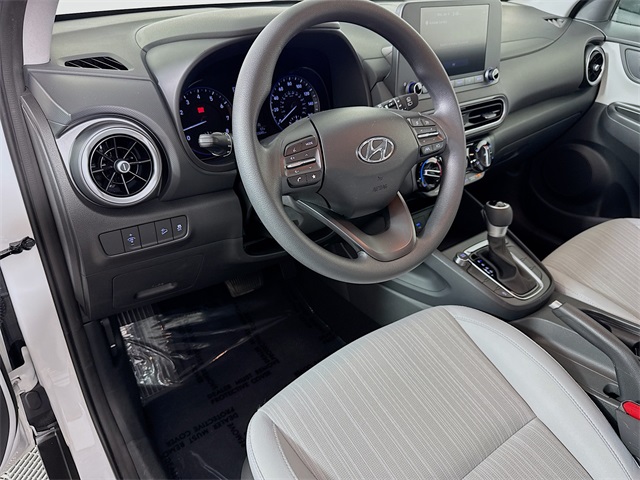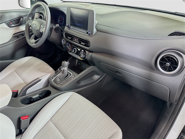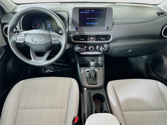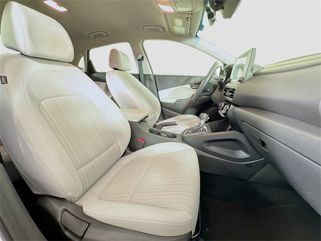 Bluetooth for Phone and Audio Streaming, USB Port, MP3- USB / I-Pod Ready, Hands Free Calling, Kona SEL, 4D Sport Utility, 2.0L I4 DOHC Dual CVVT, CVT, AWD, Lunar White, Gray Cloth, 17" x 7.0J Alloy Wheels, 4-Wheel Disc Brakes, 6 Speakers, ABS brakes, Air Conditioning, Alloy wheels, Apple CarPlay & Android Auto, Carpeted Floor Mats, Cloth Seat Trim, Delay-off headlights, Driver door bin, Driver vanity mirror, Dual front impact airbags, Dual front side impact airbags, Electronic Stability Control, Emergency communication system: Blue Link Connected Car Service (3-year complimentary subscription), Exterior Parking Camera Rear, Four wheel independent suspension, Front & Rear Mudguards, Front reading lights, Fully automatic headlights, Heated door mirrors, Illuminated entry, Passenger door bin, Passenger vanity mirror, Power door mirrors, Power driver seat, Power steering, Power windows, Radio: AM/FM/HD/SiriusXM Audio System, Rear window defroster, Remote keyless entry, Security system, Speed control, Spoiler, Steering wheel mounted audio controls, Tachometer, Telescoping steering wheel, Tilt steering wheel, Traction control, Trip computer, Turn signal indicator mirrors, Variably intermittent wipers. 28/33 City/Highway MPG