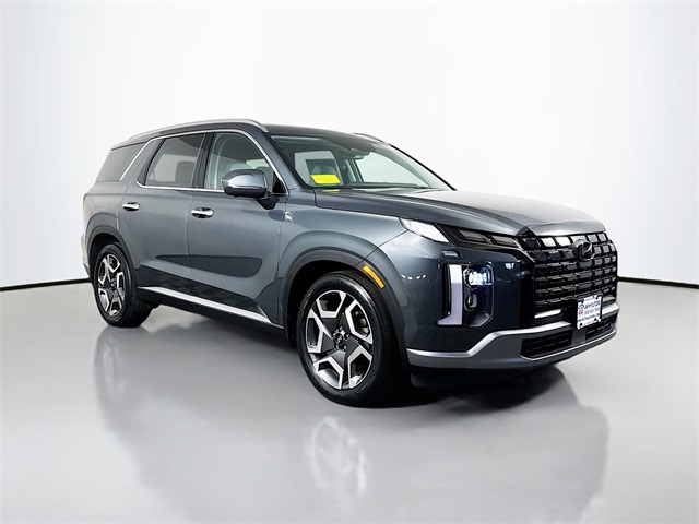 Bluetooth for Phone and Audio Streaming, USB Port, MP3- USB / I-Pod Ready, Hands Free Calling, Palisade SEL, 4D Sport Utility, 8-Speed Automatic with SHIFTRONIC, AWD, Steel Graphite, Gray/Black Artificial Leather, 115-Volt AC Power Outlet, 12.3" Full-Digital Multi-Information Display, 3rd row seats: split-bench, 3rd Row USB Outlets, 4-Wheel Disc Brakes, 6 Speakers, 8-Passenger Seating, ABS brakes, Air Conditioning, AM/FM radio: SiriusXM, Auto High-beam Headlights, Auto Leveling Rear Suspension, Auto-dimming Rear-View mirror, Automatic temperature control, Blind-Spot View Monitor, Delay-off headlights, Driver 4-Way Power Lumbar Support, Driver vanity mirror, Dual front impact airbags, Dual front side impact airbags, Electronic Stability Control, Emergency communication system: Blue Link Connected Car Service (3-year complimentary subscription), Forward Collision Avoidance Assist, Four wheel independent suspension, Front Bucket Seats, Front Center Armrest, Front dual zone A/C, Front Parking Sensors, Front reading lights, Fully automatic headlights, harman/kardon® Audio System, Heated 2nd Row Seats, Heated door mirrors, Heated Front Bucket Seats, Heated front seats, Knee airbag, Low tire pressure warning, Panic alarm, Passenger door bin, Passenger vanity mirror, Power door mirrors, Power driver seat, Power Liftgate, Power passenger seat, Power steering, Power Sunroof, Power windows, Radio: AM/FM/MP3 Audio System, Rear air conditioning, Rear audio controls, Rear Bumper Applique, Rear Side Window Sunshades, Rear window defroster, Security system, Speed-sensing steering, Split folding rear seat, Spoiler, Surround View Monitor, Tachometer, Telescoping steering wheel, Tilt steering wheel, Traction control, Trip computer, Turn signal indicator mirrors, Variably intermittent wipers, Ventilated Front & 2nd-Row Seats, Wheels: 18" x 7.5J Machine-Faced Alloy. Odometer is 10014 miles below market average!