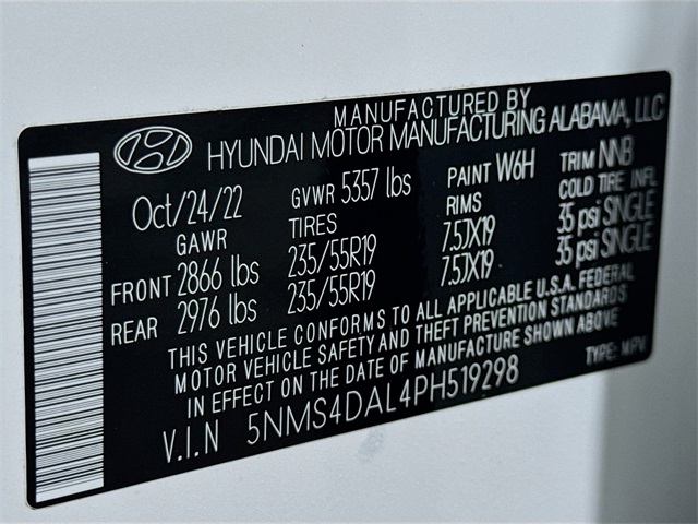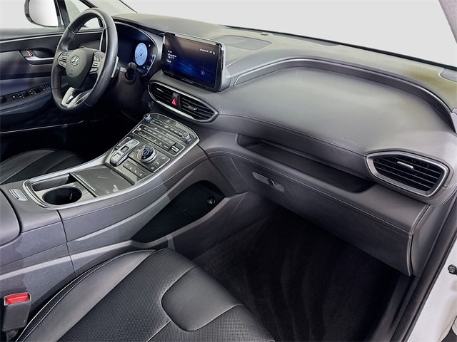 **ONE OWNER**, Bluetooth for Phone and Audio Streaming, USB Port, MP3- USB / I-Pod Ready, Hands Free Calling, Clean Carfax, Maintenance inspection completed Air filter replaced Four tires balanced Four tires mounted Four wheel alignment performed Front wiper blades/refills replaced Headlight(s) replaced Oil and filter changed Rear brake pads replaced Tire condition and pressure checked Wiper(s) replaced, Santa Fe Limited, 4D Sport Utility, 2.5L I4, Shiftronic, AWD, Serenity White Pearl, Black Leather, 12 Speakers, 4-Wheel Disc Brakes, ABS brakes, Air Conditioning, Apple CarPlay & Android Auto, Auto High-beam Headlights, Automatic temperature control, Carpeted Floor Mats, Driver door bin, Driver vanity mirror, Dual front impact airbags, Dual front side impact airbags, Electronic Stability Control, Exterior Parking Camera Rear, Front Bucket Seats, Front Center Armrest, Front dual zone A/C, Front reading lights, Fully automatic headlights, Heated & Ventilated Front Bucket Seats, Heated door mirrors, Heated steering wheel, Illuminated entry, Leather Seat Trim, Low tire pressure warning, Memory seat, Outside temperature display, Passenger door bin, Passenger vanity mirror, Power door mirrors, Power driver seat, Power Liftgate, Power moonroof, Power passenger seat, Power steering, Power windows, Radio: AM/FM Harman Kardon Display Audio, Rain sensing wipers, Rear window defroster, Remote keyless entry, Security system, Speed control, Split folding rear seat, Spoiler, Steering wheel mounted audio controls, Tachometer, Telescoping steering wheel, Tilt steering wheel, Trip computer, Turn signal indicator mirrors, Variably intermittent wipers, Ventilated front seats. 21/28 City/Highway MPG