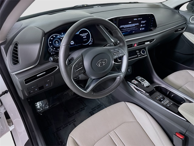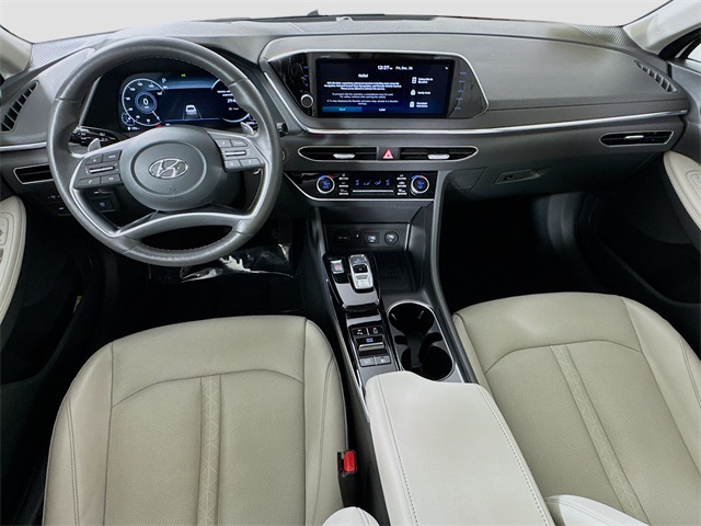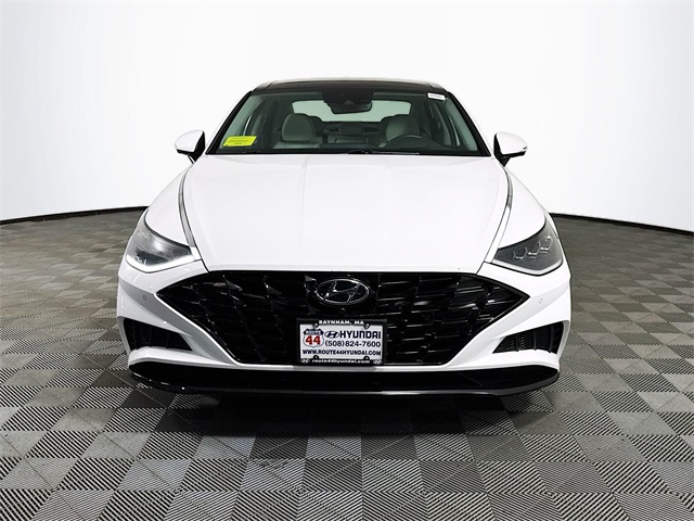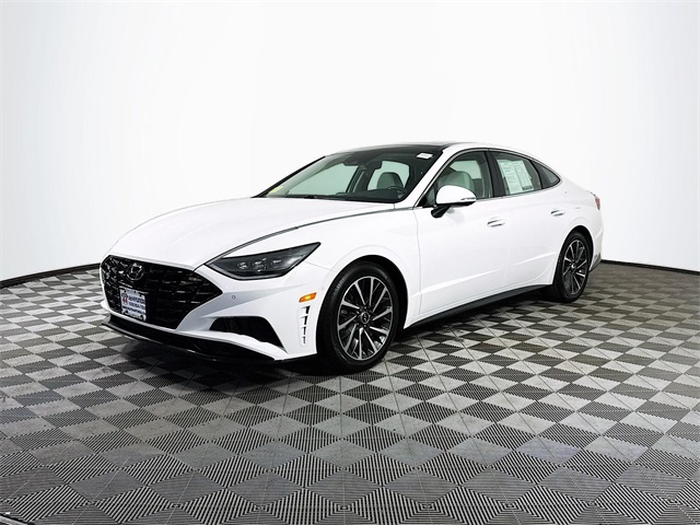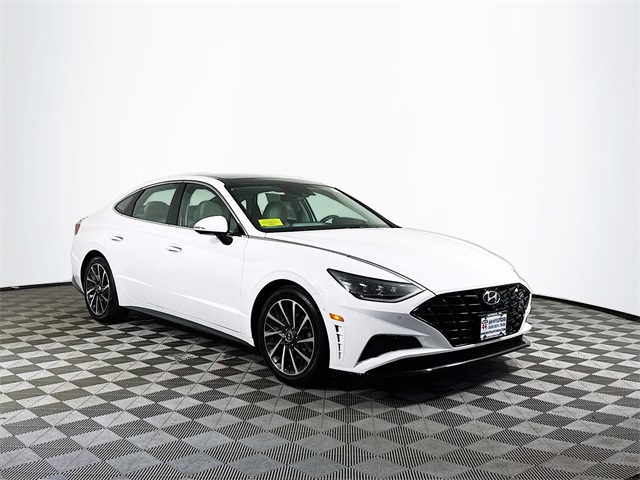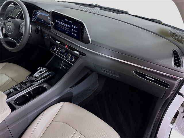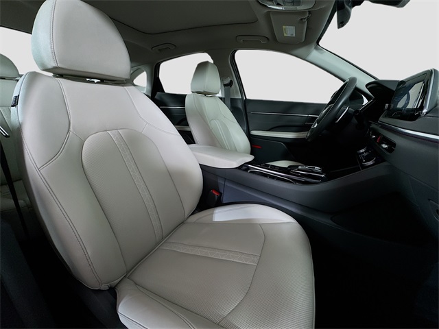Bluetooth for Phone and Audio Streaming, USB Port, MP3- USB / I-Pod Ready, Hands Free Calling, Maintenance inspection completed Air filter replaced Four wheel alignment performed Front wiper blades/refills replaced Oil and filter changed Tire(s) balanced Tires rotated, Sonata Limited, 4D Sedan, I4, 8-Speed Automatic with SHIFTRONIC, FWD, Serenity White, Dark Gray Leather, 12 Speakers, 4-Wheel Disc Brakes, ABS brakes, Air Conditioning, Apple CarPlay & Android Auto, Automatic temperature control, Carpeted Floor Mats, Driver door bin, Driver vanity mirror, Dual front impact airbags, Dual front side impact airbags, Four wheel independent suspension, Front Bucket Seats, Front Center Armrest, Front dual zone A/C, Front reading lights, Heads-Up Display, Heated door mirrors, Heated front seats, Heated steering wheel, Leather steering wheel, Low tire pressure warning, Memory seat, Navigation System, Passenger door bin, Passenger vanity mirror, Power door mirrors, Power driver seat, Power passenger seat, Power steering, Power windows, Radio data system, Radio: AM/FM/MP3/HD/SiriusXM Display Audio w/Nav, Rain sensing wipers, Rear window defroster, Remote keyless entry, Split folding rear seat, Steering wheel mounted audio controls, Tachometer, Telescoping steering wheel, Tilt steering wheel, Traction control, Trip computer, Turn signal indicator mirrors, Variably intermittent wipers, Ventilated front seats. 27/37 City/Highway MPG