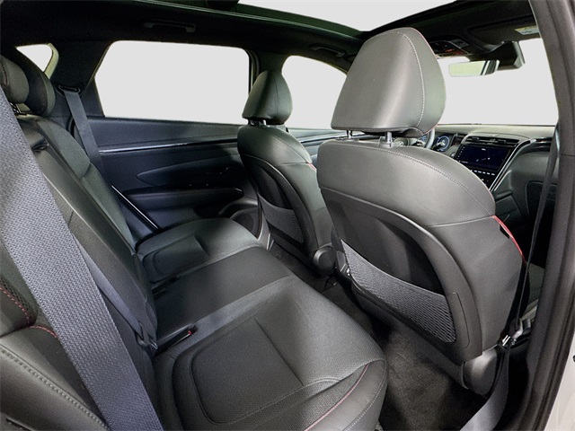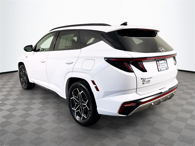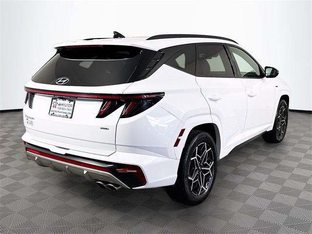Apple CarPlay, **ONE OWNER**, Bluetooth for Phone and Audio Streaming, USB Port, MP3- USB / I-Pod Ready, Hands Free Calling, Tucson N Line, 4D Sport Utility, 2.5L I4 DGI DOHC 16V LEV3-ULEV70 187hp, 8-Speed Automatic with SHIFTRONIC, AWD, Serenity White Pearl, Black, 4-Wheel Disc Brakes, 8 Speakers, ABS brakes, Air Conditioning, Apple CarPlay & Android Auto, Auto High-beam Headlights, Auto-dimming Rear-View mirror, Automatic temperature control, Driver door bin, Driver vanity mirror, Dual front impact airbags, Dual front side impact airbags, Electronic Stability Control, Front Bucket Seats, Front Center Armrest, Front dual zone A/C, Front reading lights, Fully automatic headlights, Heated door mirrors, Heated Front Bucket Seats, Heated front seats, Low tire pressure warning, Passenger vanity mirror, Power door mirrors, Power driver seat, Power Liftgate, Power steering, Power windows, Radio: Bose Premium w/AM/FM/HD/SiriusXM Audio System, Rear window defroster, Remote keyless entry, Security system, Speed control, Spoiler, Steering wheel mounted audio controls, Tachometer, Telescoping steering wheel, Tilt steering wheel, Traction control, Trip computer, Turn signal indicator mirrors, Variably intermittent wipers, Wheels: N Line 19" x 7.5J" Alloy. Odometer is 1554 miles below market average! 23/28 City/Highway MPG