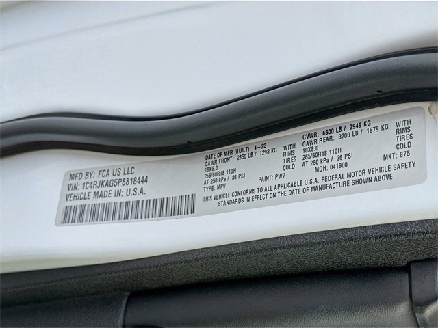 **ONE OWNER**, Bluetooth for Phone and Audio Streaming, USB Port, MP3- USB / I-Pod Ready, Grand Cherokee L Laredo, 4D Sport Utility, 3.6L V6 24V VVT, 8-Speed Automatic, 4WD, Bright White Clearcoat, Black Cloth, 3rd row seats: split-bench, 4-Wheel Disc Brakes, 6 Speakers, ABS brakes, Air Conditioning, Anti-whiplash front head restraints, Automatic temperature control, Cloth Seats, Driver door bin, Driver vanity mirror, Dual front impact airbags, Dual front side impact airbags, Electronic Stability Control, Four wheel independent suspension, Front Bucket Seats, Front Center Armrest w/Storage, Front dual zone A/C, Heated door mirrors, Molded In Color Black/Gloss Black Roof Rails, Normal Duty Suspension, ParkView Rear Back-Up Camera, Passenger door bin, Passenger vanity mirror, Power door mirrors, Power driver seat, Power steering, Power windows, Quick Order Package 23A Laredo, Radio: Uconnect 5 w/8.4" Display, Rear air conditioning, Rear anti-roll bar, Rear window defroster, Remote keyless entry, Security system, Speed control, Split folding rear seat, Spoiler, Steering wheel mounted audio controls, Tachometer, Telescoping steering wheel, Tilt steering wheel, Traction control, Trip computer, Voltmeter, Wheels: 18" x 8.0" Fully Painted Aluminum.
