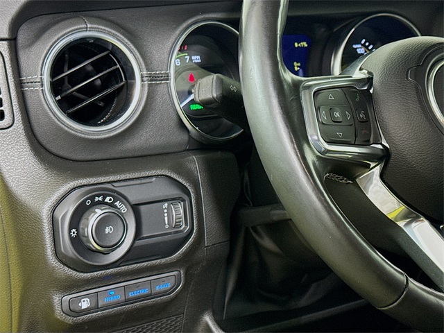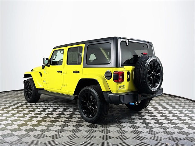 Apple CarPlay, **ONE OWNER**, Bluetooth for Phone and Audio Streaming, USB Port, MP3- USB / I-Pod Ready, Hands Free Calling, Clean Carfax, Local Trades, 30-PT Multi Inspection Performed, Maintenance inspection completed Air filter replaced Front wiper blades/refills replaced Oil and filter changed Tire(s) balanced Tires rotated Wiper(s) replaced, Wrangler Sahara 4xe, 4D Sport Utility, 2.0L I4 DOHC, 8-Speed Automatic, 4WD, High Velocity Clearcoat, Black, 4-Wheel Disc Brakes, 9 Speakers, ABS brakes, Alloy wheels, AM/FM radio: SiriusXM, Apple CarPlay/Android Auto, Black 3-Piece Hard Top, Compass, Delay-off headlights, Driver door bin, Driver vanity mirror, Dual front impact airbags, Dual front side impact airbags, Electronic Stability Control, Freedom Panel Storage Bag, Front Bucket Seats, Front reading lights, Fully automatic headlights, Heated door mirrors, Illuminated entry, Low tire pressure warning, Panic alarm, ParkView Rear Back-Up Camera, Passenger door bin, Passenger vanity mirror, Power door mirrors, Quick Order Package 29P Sahara, Radio data system, Rear Window Defroster, Rear Window Wiper/Washer, Security system, Speed control, Split folding rear seat, Tachometer, Telescoping steering wheel, Tilt steering wheel, Trip computer. Odometer is 7963 miles below market average!