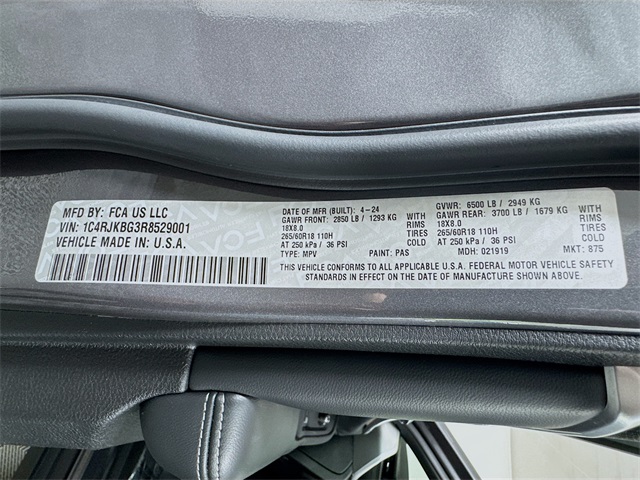 Bluetooth for Phone and Audio Streaming, USB Port, MP3- USB / I-Pod Ready, Hands Free Calling, Fresh New Synthetic Oil Change, 4- Brand New Tires, 4- Wheel Alignmnet Performed, New Engine Air Filter, New Wiper Blades, Grand Cherokee L Limited, 4D Sport Utility, 3.6L V6 24V VVT, 8-Speed Automatic, 4WD, Baltic Gray Metallic Clearcoat, Global Black Vinyl, 4-Wheel Disc Brakes, 6 Speakers, ABS brakes, Air Conditioning, AM/FM radio: SiriusXM with 360L, Automatic temperature control, Compass, Driver door bin, Driver vanity mirror, Dual front impact airbags, Dual front side impact airbags, Electronic Stability Control, Four wheel independent suspension, Front dual zone A/C, Front reading lights, Heated door mirrors, Heated front seats, Heated rear seats, Low tire pressure warning, ParkView Rear Back-Up Camera, Passenger door bin, Power door mirrors, Power driver seat, Power passenger seat, Power steering, Power windows, Radio: Uconnect 5 Nav w/10.1" Display, Rear air conditioning, Rear window defroster, Remote keyless entry, Split folding rear seat, Spoiler, Steering wheel mounted audio controls, Tachometer, Telescoping steering wheel, Tilt steering wheel, Traction control, Trip computer, Turn signal indicator mirrors, Wheels: 18" x 8.0" Polished/Painted Aluminum.