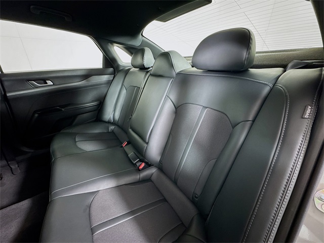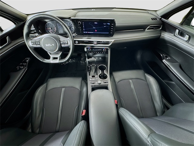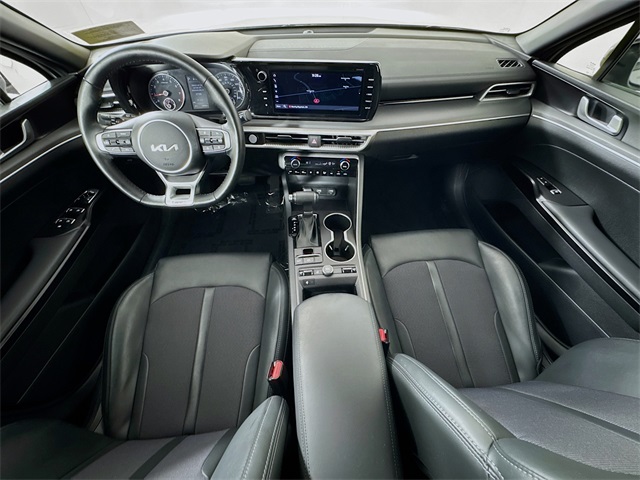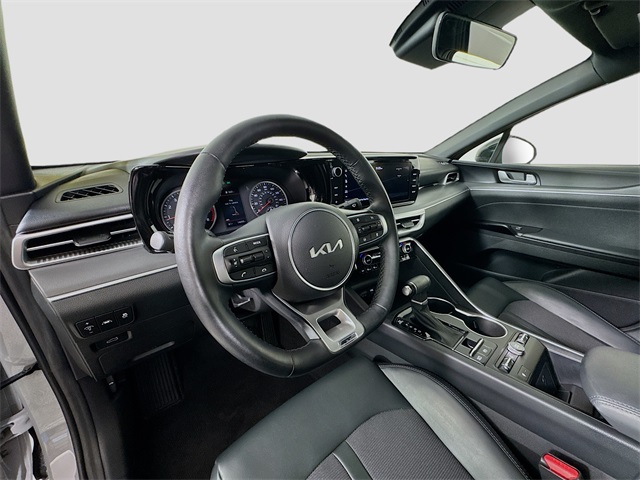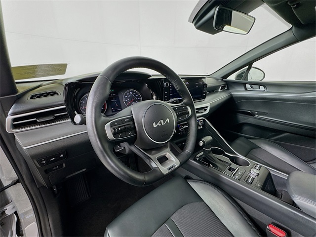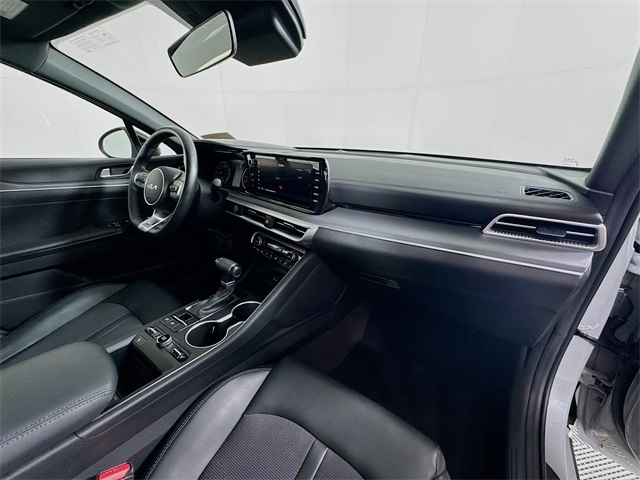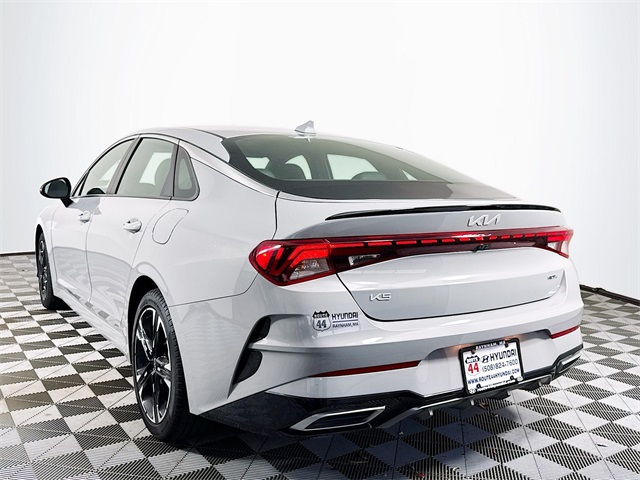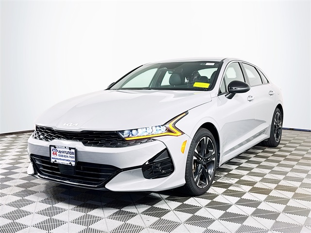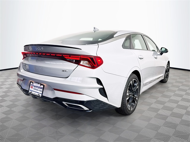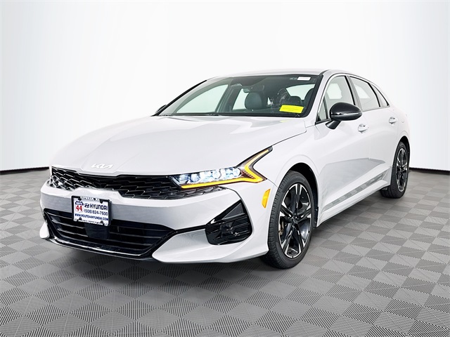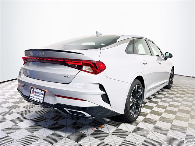 **ONE OWNER**, Bluetooth for Phone and Audio Streaming, USB Port, MP3- USB / I-Pod Ready, Hands Free Calling, Clean Carfax, Fresh New Synthetic Oil Change, 4-wheel Alignment Performed, K5 GT-Line, 4D Sedan, 1.6L I4 DGI Turbocharged DOHC 16V LEV3-ULEV70 180hp, 8-Speed Automatic, AWD, Wolf Gray, Black Cloth, 4-Wheel Disc Brakes, 6 Speakers, ABS brakes, Air Conditioning, Apple CarPlay & Android Auto, Auto High-beam Headlights, Automatic temperature control, Carpeted Floor Mats, Cloth/SynTex Seat Trim, Delay-off headlights, Driver door bin, Driver vanity mirror, Dual front impact airbags, Dual front side impact airbags, Electronic Stability Control, Forward Collision Avoidance-Assist, Four wheel independent suspension, Front Bucket Seats, Front Center Armrest, Front dual zone A/C, Front fog lights, Fully automatic headlights, GT-Line Premium Package, Heated door mirrors, Heated front seats, Highway Driving Assist, LED Projection Headlamps, Passenger door bin, Power door mirrors, Power driver seat, Power steering, Power windows, Radio: AM/FM/MP3 Audio System, Rear window defroster, Remote keyless entry, Security system, Smart Cruise Control w/Stop & Go, Speed control, Speed-sensing steering, Split folding rear seat, Spoiler, Sport steering wheel, Steering wheel mounted audio controls, Tachometer, Telescoping steering wheel, Tilt steering wheel, Traction control, Turn signal indicator mirrors, Variably intermittent wipers, Wheels: 18" Gloss Black Machined Finish Alloy. Odometer is 11898 miles below market average!