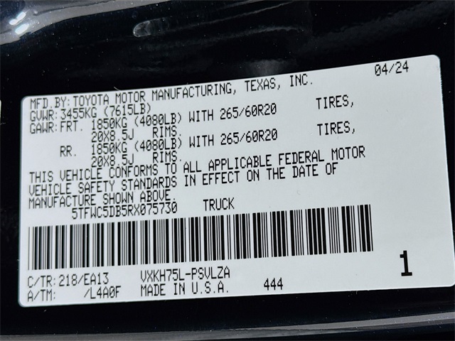 VR Certified 7yr 100000 warranty. 2024 Toyota Tundra Hybrid Limited Midnight Black Metallic USB Port, MP3- USB / I-Pod Ready, Hands Free Calling, Back Up Camera, Bluetooth for Phone and Audio Streaming, Clean Carfax, Moonroof/sunroof, REPAIR $1,134.97, TIRES ROTATE AND BALANCE, NEW FRONT WIPER BLADES, LUG NUTS, ALIGNMENT, NEW OIL AND FILTER, RESURFACE FRONT BRAKES, NEW CABIN FILTER, 4-Wheel Disc Brakes, ABS brakes, Air Conditioning, Alloy wheels, AM/FM radio: SiriusXM, Apple CarPlay/Android Auto, Auto High-beam Headlights, Auto-dimming door mirrors, Auto-dimming Rear-View mirror, Automatic temperature control, Brake assist, Bumpers: body-color, Delay-off headlights, Driver door bin, Driver vanity mirror, Dual front impact airbags, Dual front side impact airbags, Electronic Stability Control, Emergency communication system: Safety Connect (10-year trial), Exterior Parking Camera Rear, Front & Rear Mud Guards, Front anti-roll bar, Front Bucket Seats, Front Center Armrest, Front dual zone A/C, Front fog lights, Front reading lights, Front wheel independent suspension, Fully automatic headlights, Garage door transmitter: HomeLink, Heated & Ventilated Front Bucket Seats, Heated door mirrors, Heated front seats, Heated steering wheel, Illuminated entry, Knee airbag, Leather Shift Knob, Low tire pressure warning, Memory seat, Multi-Terrain Back Monitor, Navigation System, Occupant sensing airbag, Outside temperature display, Overhead airbag, Overhead console, Panic alarm, Passenger door bin, Passenger vanity mirror, Power door mirrors, Power driver seat, Power passenger seat, Power steering, Power windows, Radio data system, Rear reading lights, Rear seat center armrest, Rear step bumper, Rear window defroster, Remote keyless entry, Security system, Speed control, Speed-sensing steering, Split folding rear seat, Steering wheel mounted audio controls, Tachometer, Telescoping steering wheel, Tilt steering wheel, Traction control, TRD Off-Road Package, Trip computer, Turn signal indicator mirrors, Variably intermittent wipers, Ventilated front seats, Voltmeter, Wheels: 20" x 8.5" Black Alloy.