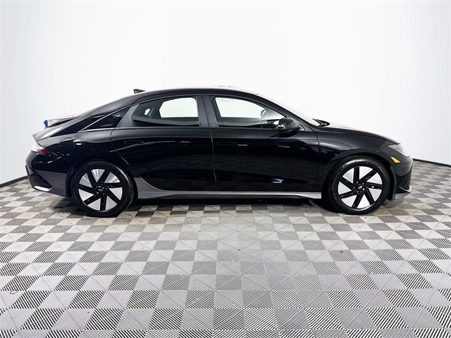 **ONE OWNER**, Bluetooth for Phone and Audio Streaming, USB Port, MP3- USB / I-Pod Ready, Hands Free Calling, IONIQ 6 SE Standard Range, 4D Sedan, Electric Motor, 1-Speed Automatic, RWD, Onyx Black, Black Cloth, 4-Wheel Disc Brakes, ABS brakes, Air Conditioning, Automatic temperature control, Carpeted Floor Mats, Delay-off headlights, Driver door bin, Driver vanity mirror, Dual front impact airbags, Dual front side impact airbags, Electronic Stability Control, Emergency communication system, Envelope Cargo Net, First Aid Kit, Four wheel independent suspension, Front Bucket Seats, Front Center Armrest, Front dual zone A/C, Front reading lights, Fully automatic headlights, Heated door mirrors, Low tire pressure warning, Panic alarm, Passenger door bin, Power door mirrors, Power driver seat, Power steering, Power windows, Rear window defroster, Remote keyless entry, Security system, Speed control, Speed-sensing steering, Split folding rear seat, Spoiler, Stain-Resistant Cloth Seating Surfaces, Steering wheel mounted audio controls, Telescoping steering wheel, Tilt steering wheel, Traction control, Turn signal indicator mirrors, Variably intermittent wipers, Vehicle to Load Adapter, Wheels: 18 x 7.5J Alloy. Odometer is 2593 miles below market average! 151/120 City/Highway MPG