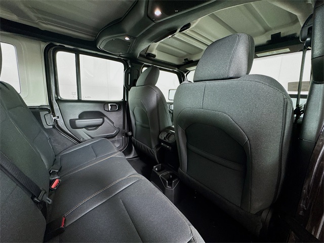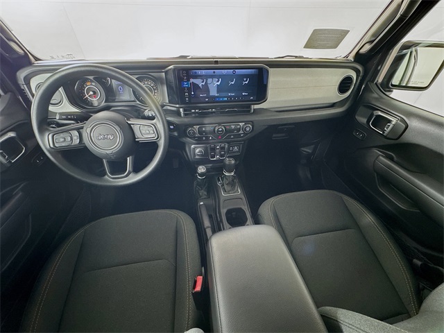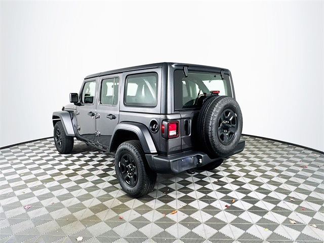 Bluetooth for Phone and Audio Streaming, USB Port, MP3- USB / I-Pod Ready, Hands Free Calling, Fresh New Synthetic Oil, Wrangler Sport, 4D Sport Utility, 2.0L I4 DOHC, 8-Speed Automatic, 4WD, Granite Crystal Metallic Clearcoat, Black Cloth, 8 Speakers, ABS brakes, Air Conditioning, AM/FM radio: SiriusXM, Cloth Low-Back Bucket Seats, Delay-off headlights, Dual front impact airbags, Dual front side impact airbags, Electronic Stability Control, Front anti-roll bar, Front Bucket Seats, Front Center Armrest w/Storage, Front fog lights, Normal Duty Suspension, Panic alarm, ParkView Rear Back-Up Camera, Passenger door bin, Passenger vanity mirror, Power steering, Power windows, Radio: Uconnect 5 w/12.3" Display, Rear Window Defroster, Remote keyless entry, Speed control, Split folding rear seat, Steering wheel mounted audio controls, Stop-Start Dual Battery System, Tachometer, Telescoping steering wheel, Tilt steering wheel, Traction control, Trip computer, Variably intermittent wipers, Wheels: 17" x 7.5" Black Steel Styled.